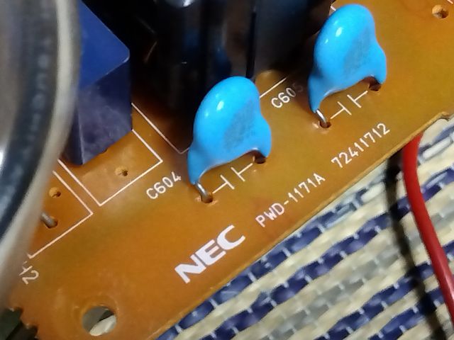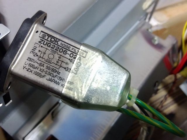 電源といえば、ACケーブルの差込口がやたら長いと思ったら、ノイズフィルタ一体型だった。アナログ信号を扱うCRT横に電源基板を収める設計なので気を使っていたのか?