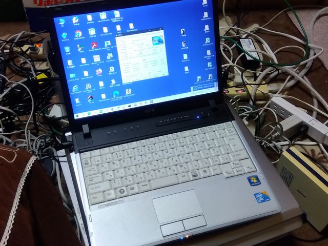 ラボ部屋の隅に積んであったノパソの除湿運転と称して起動試験。この機体、PATA-SSDが入っていたハズだが、NB75Mに移植してたか…。