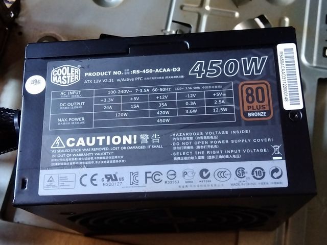 電源ユニット(クーラーマスターRS-450-ACAA-D3)が高級過ぎるが、M/Bを外した状態でないと出し入れできない。仕方ないので、とりあえず組み込んで復旧しておいた。