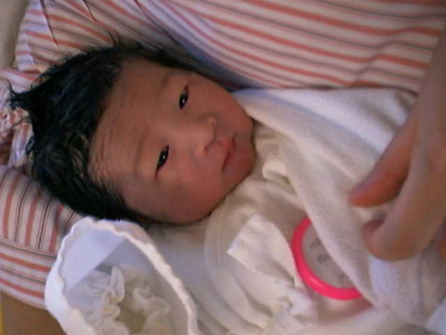 女房の実家から帰ってきました。今日から長女は両親と離れて(女房はまだ入院中)暮らさなければなりません。かわいそうですが、これも世の定めなのであります。さて、ついに2号が誕生しました。3,240gという長女(3,060g)にも増して大きな赤ちゃんです。女の子なので、母親が考えた名前をつけました(またもALL平仮名)。生まれたばかりだというのに、髪が黒々としていて笑わせてくれます(画像はこちら)。元気良く泣いていました。母親がいうには『お乳をダラダラ吸うのが姉と同じ』だそうです。