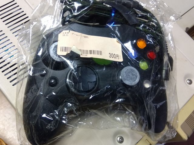 ラベルに300円と記載された中古コントローラを居間の隅から発見。破損しているようだし、袋から出してUSB改造&補修するか…。